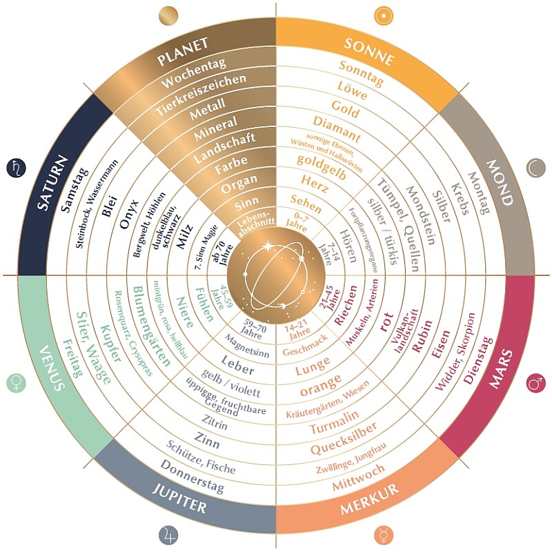 Il délimite, apaise et joue aussi un rôle important dans l’introspection et la méditation. Son métal est le plomb.