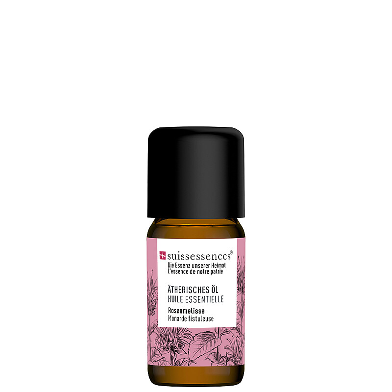 La mélisse officinale (Monarda fistulosa), aussi appelée monarde sauvage ou encore bergamote fistuleuse, n’est en réalité pas une mélisse, mais une monarde. Elle appartient donc à la même famille que la mélisse d’or (Monarda didyma). Elle est originaire d’Amérique du Nord, où les Indiens l’utilisaient comme remède contre les refroidissements. À l’heure actuelle, elle reste couramment consommée en Amérique dans une préparation de thé rafraîchissant. La monarde cultivée par suissessences est une variété rare spécifique de cette plante, dont les feuilles et les fleurs embaument comme les roses de Damas et dont la teneur en huile est relativement élevée (300 à 500 kg de plantes fraîches pour 1 kg d’huile). L’analyse des composants de l’huile essentielle démontre une certaine similitude avec l’huile de rose, avec toutefois un parfum un peu plus léger et moins intense. La monarde a apporté une toute nouvelle dimension à l’assortiment aromatique de suissessences, qui était auparavant plutôt herbacé et frais, et ses nuances florales délicates font merveille dans les assemblages.