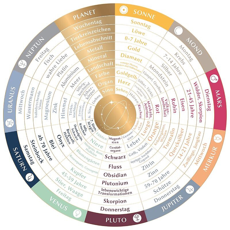 Seine körperlichen Entsprechungen umfassen die Lungen, die Zellkommunikation und das Immunsystem.